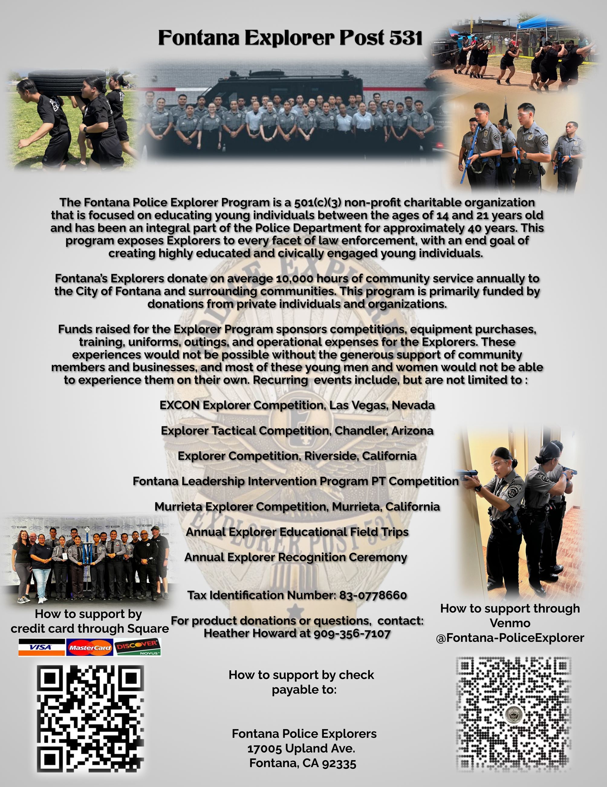 The Explorer Program is a 501(c)(3) charity and is primarily funded through community support and donations. For more information on how to support the young leaders of tomorrow click here.